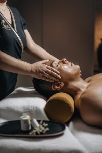 | Massagem relaxante de corpo inteiro realizada nos jardins exteriores, com vista para o mar. |